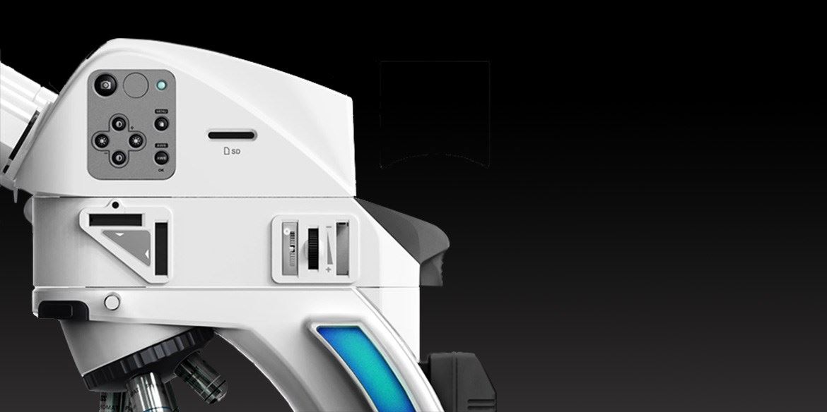 岸峰團隊為卡爾蔡司獨家定制的這款顯微鏡中,主體不動的部分均用白色展示,干凈,簡潔。按鈕、旋轉、操作等部位用灰色,黑色區別標示,更精準。